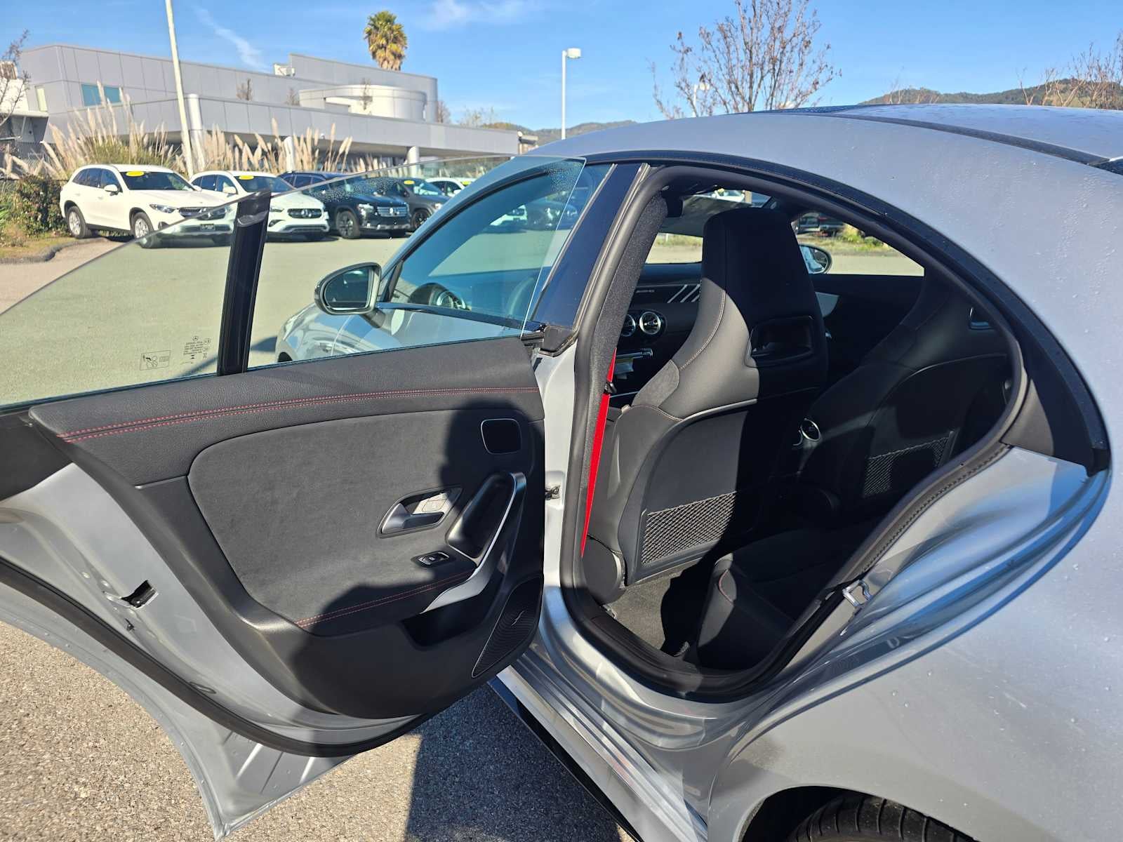 Navigation, Sunroof, Panoramic Roof, Full-Time All-Wheel, Heated Driver Seat Heated Seats, Nav System, Moonroof. FUEL EFFICIENT 29 MPG Hwy/22 MPG City! Cirrus Silver Metallic exterior and Black w/ Red Stitching interior Mercedes-Benz AMG® CLA 35 with Cirrus Silver Metallic exterior and Black w/ Red Stitching interior features a 4 Cylinder Engine with 302 HP at 5800 RPM*.