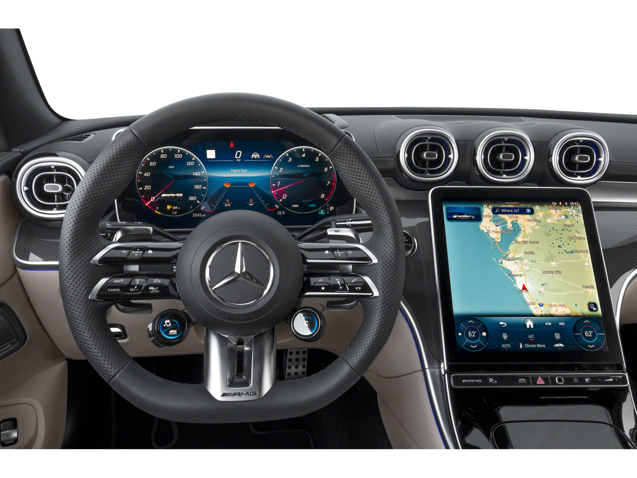 WHEELS: 20 AMG® MULTI-SPK Y-DESIGN W/BLACK ACCENTS 20 x 9.5J front and 20 x 11J rear, Tires: 265/35R20 Front & 295/30R20 Rear, Summer Performance Tires, TIREFIT, REAR SIDE AIRBAGS, Navigation, Automatic Full-Time All-Wheel, Quad Bucket Seats, Heated Driver Seat