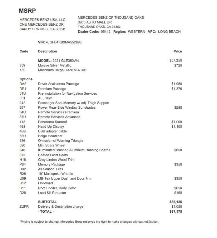 DRIVER ASSISTANCE PACKAGE PLUS Active Stop & Go Assist, Active Lane Keeping Assist, Active Emergency Stop Assist, Route-Based Speed Adaptation, Evasive Steering Assist, PRESAFE® PLUS Rear Collision Protection, Active Distance Assist DISTRONIC®, Active Steering Assist, Active Brake Assist w/Cross-Traffic Function, Active Blind Spot Assist, Active Lane Change Assist, Active Speed Limit Assist, Traffic Sign Assist, PREMIUM PACKAGE Parking Assist Code, Surround View System, 115V Power Outlet, Burmester® Surround Sound System, HEAD-UP DISPLAY, PANORAMA SLIDING SUNROOF, ILLUMINATED RUNNING BOARDS, BODY COLOR ROOF SPOILER, PASSENGER SEAT MEMORY, WHEELS: 19 TWIN 5-SPOKE (STD), Navigation, Full-Time 4MATIC® All-Wheel, Power Liftgate, Heated Driver Seat, Turbocharged Mercedes-Benz of Thousand Oaks is your local Mercedes-Benz dealership, serving the Thousand Oaks and Los Angeles Metro area since 1982. Our showroom always includes the most current luxurious and sophisticated Mercedes-Benz models. Were only a short trip from many communities, including Malibu and Simi Valley, and our team is happy to provide sales, financing, and automotive service and repair on site.