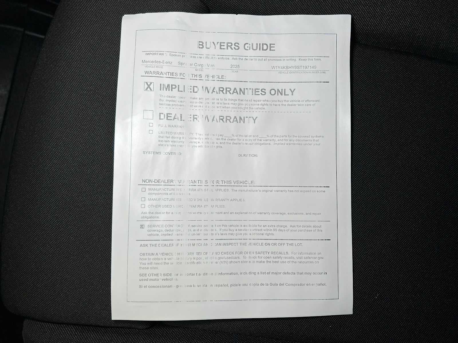 - Vehicle Name: Mercedes-Benz Sprinter Cargo Van
