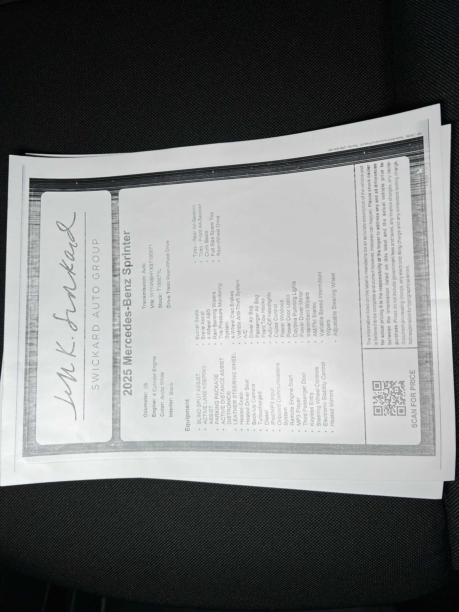 “A 1.75% surcharge is applied to all credit card transactions. This fee is not greater than our cost of acceptance. There is no fee for debit card payments.” *MSRP is the Manufacturer’s Suggested Retail Price, and is not the dealer’s advertised or asking price. See dealer for pricing details. MSRP excludes government fees and taxes, any finance charges, any dealer document processing charge, any electronic filing charge, any emission testing charge, insurance, and optional equipment, products, packages and accessories selected by the customer. All advertised vehicles are subject to actual dealer availability. Must qualify for all applicable incentives. Prices include all dealer incentives. Images displayed may not be representative of the actual trim level of a vehicle, and colors shown are the most accurate representations available. All vehicles are one of each, and all offers expire at close of business on the day the offer is removed from this website. All financing is subject to credit approval. While great effort is made to ensure the accuracy of the information on this website, errors do occur so please verify information with one of our dealership representatives. **The charging voucher is subject to the program terms of Mercedes-Benz USA’s service provider ChargePoint, which are presented to the customer when the Mercedes me Charge service is activated. All MY25 BEV customers, excluding eSprinter, also receive 2 years of free unlimited charging at Mercedes-Benz High Power Charging (“MB HPC”) network; those charging sessions are always free during such 2-year period and are therefore not covered by the $1,000 charging voucher if selected. However, idle fees incurred at MB HPC stations are the responsibility of the customer and will be charged to the customer’s Mercedes me Charge account, which could be covered by either a valid payment method associated with the account or the balance of the charging voucher. The offer is non-refundable, non-transferrable, and non-cancelable once a selection has been made and has no cash value. Additionally, the offer is subject to change and may be discontinued at any time. Bluetooth® is a registered mark of Bluetooth® SIG, Inc. Android Auto® is a trademark of Google LLC. Apple CarPlay® is a registered trademark of Apple Inc.