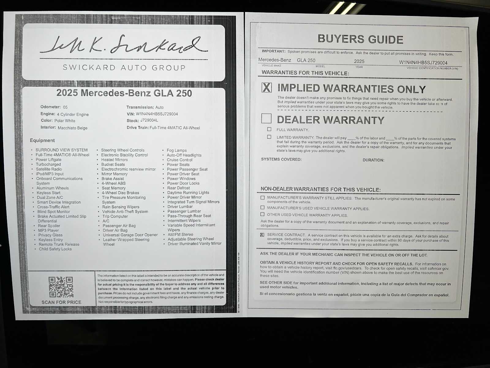 Step into the world of luxury and performance with the 2025 Mercedes-Benz GLA 250, where every drive invites you to explore the stunning landscapes of Washington, from its lush forests to vibrant cityscapes. As you settle into the plush interior, the Full-Time 4MATIC® All-Wheel Drive system ensures that you can confidently navigate any terrain, whether its a rainy day in Seattle or a winding road through the mountains. The turbocharged engine offers a dynamic driving experience, transforming every journey into an exhilarating adventure while ensuring efficiency on the open road. With the power liftgate, loading up for a weekend getaway is effortless, allowing you to focus on the adventure ahead. The back-up camera provides peace of mind as you maneuver through tight spaces, ensuring that every parking experience is seamless. Satellite radio fills the cabin with your favorite tunes, turning every drive into a personal concert. This GLA 250 is not just a vehicle; its a statement of sophistication and a testament to Mercedes-Benzs commitment to quality and innovation. Ready to elevate your driving experience? Visit us at Mercedes-Benz of Seattle, your local family-owned dealer, and discover how the GLA 250 can transform your journeys into extraordinary adventures.According to CARFAXs Vehicle History Report, this car is Accident-Free and is well-maintained (regular oil changes; general maintenance)!!